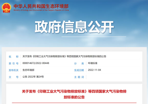 《印刷工業(yè)大氣污染物排放標準》(GB41616-2022),規(guī)定了印刷工業(yè)大氣污染物排放控制要求、監(jiān)測和監(jiān)督管理要求。