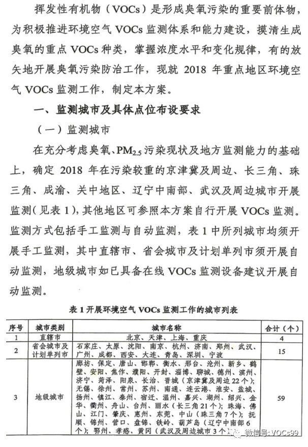 近日,環(huán)保部印發(fā)了《2018年重點地區(qū)環(huán)境空氣揮發(fā)性有機物監(jiān)測方案》。方案對于VOCs監(jiān)測的城市、監(jiān)測項目、時間頻次及操作規(guī)程等做了詳細規(guī)定。